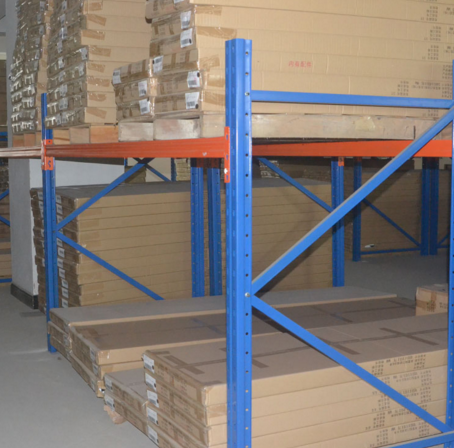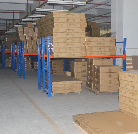 仓库驶入式货架是一种不以通道分割的、连续性的整栋式货架,在支撑导轨上,托盘按深度方向存放,一个紧接着一个,这使得高密度存储成为可能。货物存取从货架同一侧进出,并遵循“先存后取原则”。平衡重及前移式叉车均可方便地驶入货架通廊中间存取货物。驶入式货架由于存储密度较大,所以整体而言投资成本相对较底;适用于品种较少、数量较多且货物存取模式可预定的情况,常用来储存大批相同类型货物。